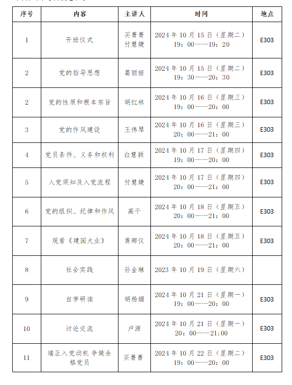 具体课程安排见下表
