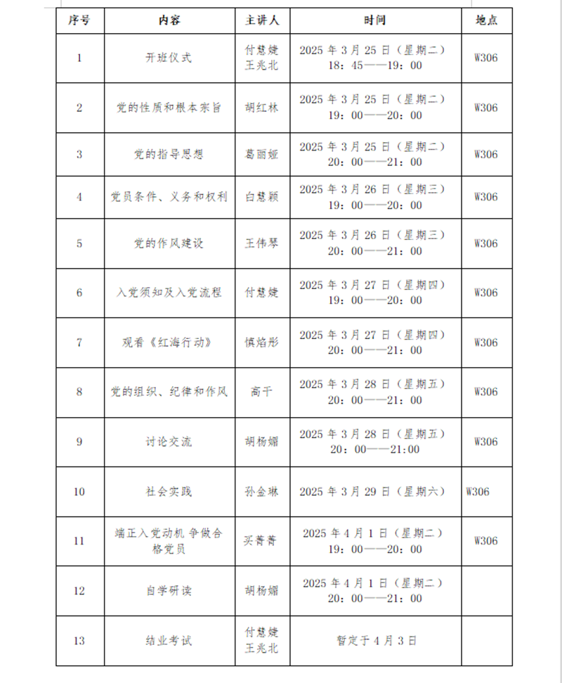 结业考试暂定于4月3日进行,由学校党校统一命题,具体安排另行通知。