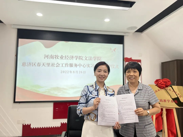 此次与惠济区春天里社会工作服务中心合作签约暨实践教学基地揭牌,促进了双方进一步开展多层次、多形式、多领域的合作,实现了校社资源的有机结合和优化配置,为产教融合、人才培养、创新创业等领域合作搭建了更加广阔的平台,同时也为学生实习就业奠定了良好基础。