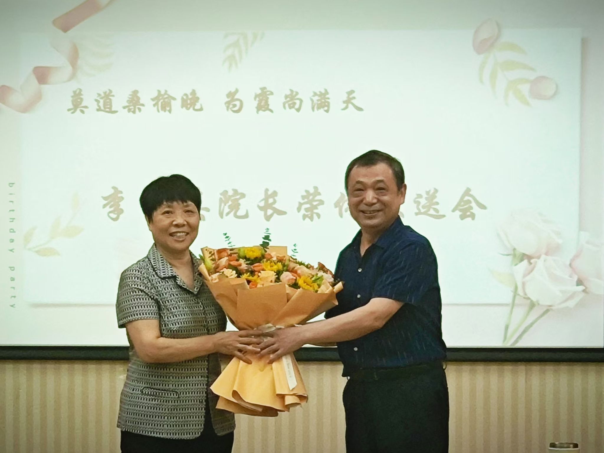 欢送会中,与会人员纷纷表达了对李院长的不舍和祝福之情,胡红林书记为李院长赠送了鲜花和纪念品。最后,全体人员合影留念,荣休欢送会在温馨、和谐、热烈的气氛中圆满结束。