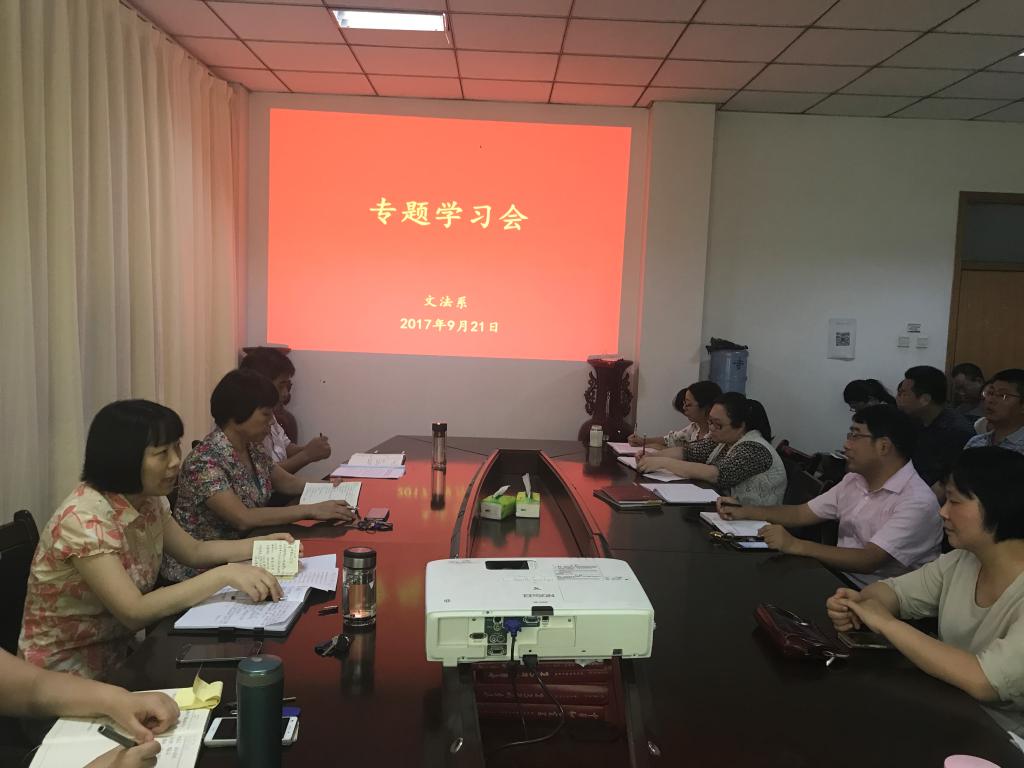 9月21日下午,文法系党总支组织全系教师开展专题学习会,学习领会学校思想政治工作会议精神。
