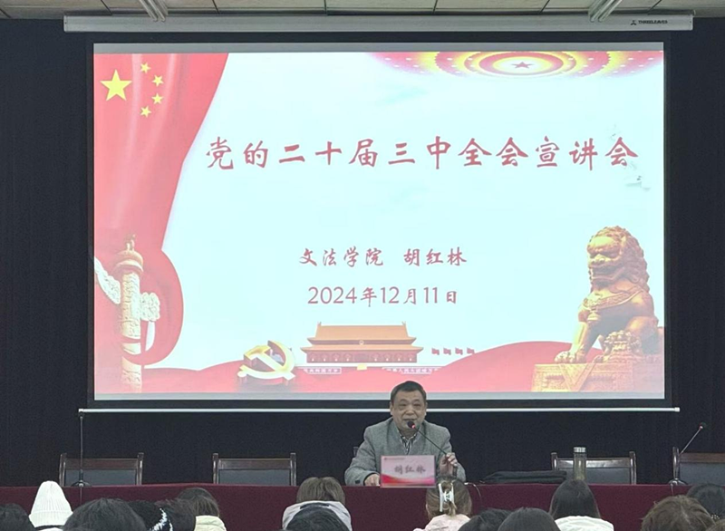 胡红林从党的二十届三中全会召开的情况、重大历史意义、我党召开的历次三中全会和“六个坚持”的重大原则等四个方面给大家进行了宣讲。他全面系统地解读了《中共中央关于进一步全面深化改革、推进中国式现代化的决定》,使参加宣讲会的学生党员和入党积极分子深刻认识了党的二十届三中全会的重要历史意义。
