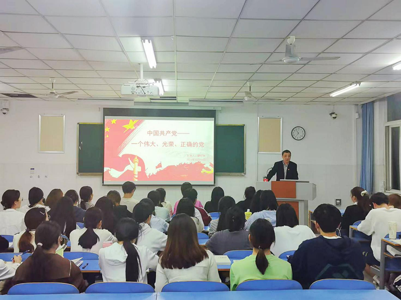 课程伊始,胡红林书记以“坚持真理、坚守理想,践行初心、担当使命,不怕牺牲、英勇斗争,对党忠诚、不负人民”的伟大建党精神为主线,深刻阐述了党的性质和根本宗旨,奠定了本节党课的总基调。接着,胡红林书记通过“县委书记焦裕禄”、“白求恩大夫”、“红军血战湘江”等催人泪下的红色故事,指出中国共产党人全心全意为人民服务,敢于牺牲自己的一切,才能经过百年洗礼不断发展壮大,始终得到人民的拥护。最后,胡红林对全体入党积极分子提出要求,同学们要牢记伟大建党精神,认真学习党的历史,在实践中不断深入理解党的性质和根本宗旨,始终按照共产党员的标准严格要求自己,发挥先锋模范作用,通过自己的不懈奋斗,早日成为一名光荣的共产党员。