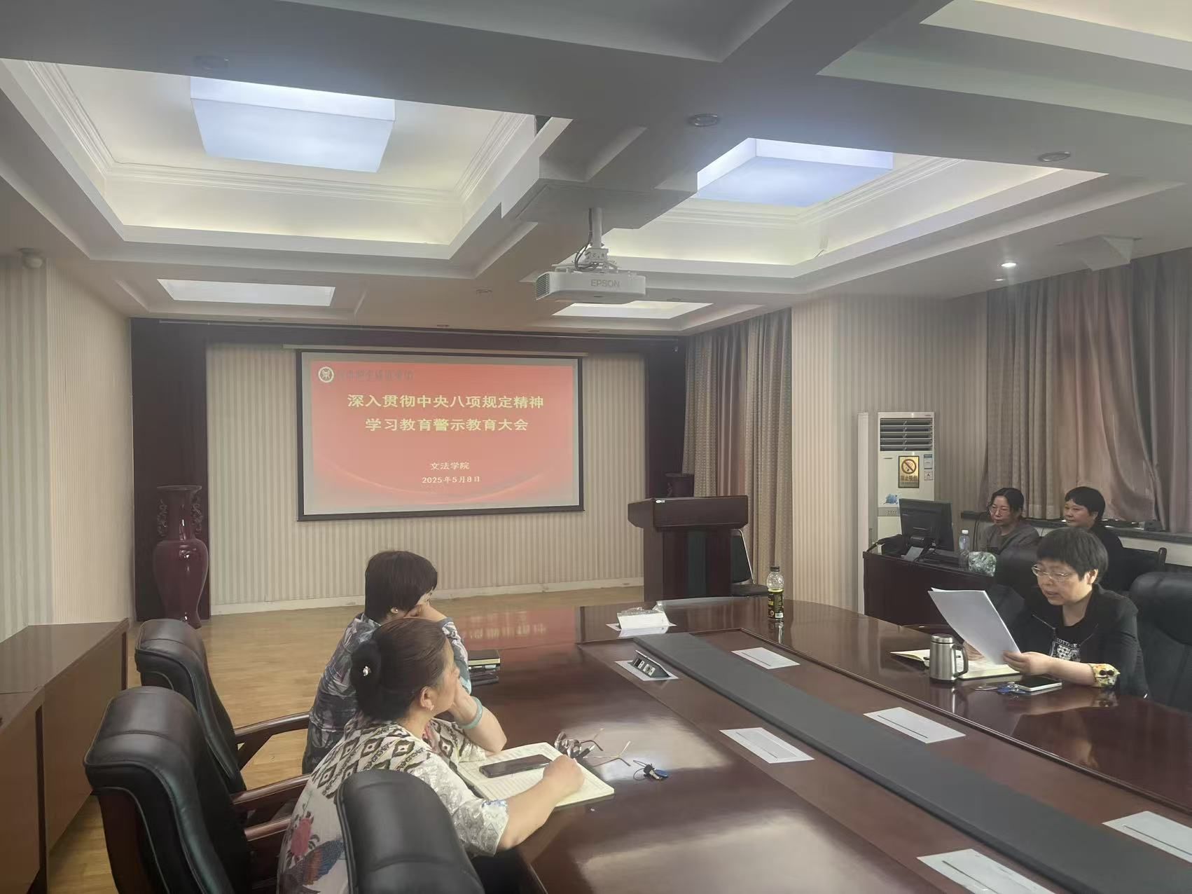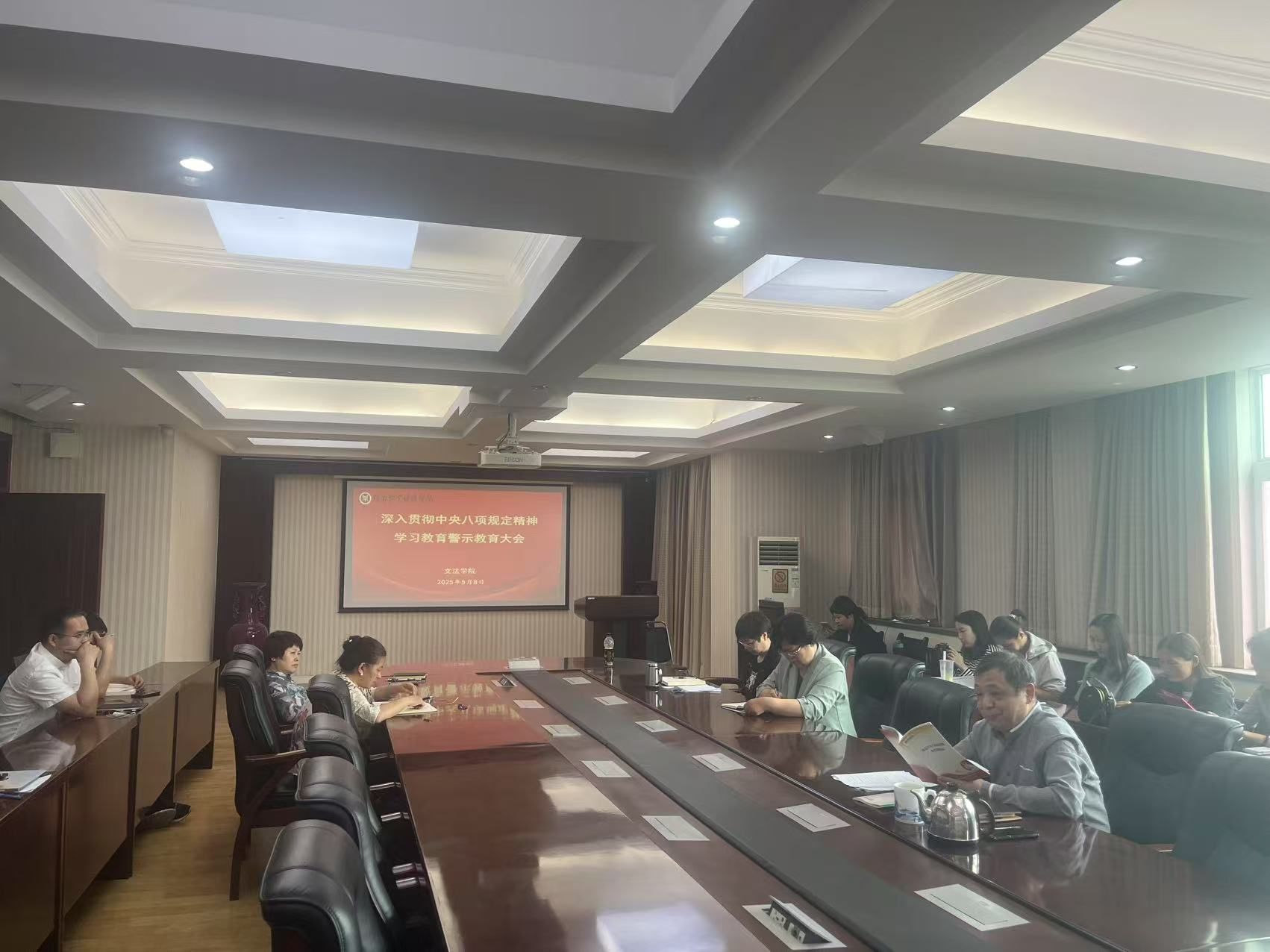 在警示教育环节,胡红林书记选取了校纪委、监察专员办、巡察办选编的《违反中央八项规定精神典型案例选编》中的“违规吃喝”的三个案例进行了深刻剖析,教育引导党员干部要知敬畏、存戒惧、守底线,增强贯彻中央八项规定精神的自觉性、主动性,教育大家要引以为戒,严守纪律底线,坚决杜绝各类违规行为的发生。