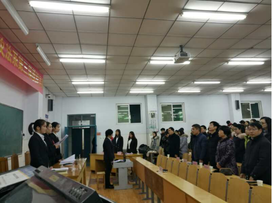 12月14日下午,由校宣传部主办,文法系承办的12.4法治宣传日系列活动之模拟法庭在E209教室举行。文法系主任李国英、宣传部老师袁凤友、文法系副书记王本聚、法律教研室老师以及法律和知识产权专业的全体同学参加了本届模拟法庭。郑州工程技术学院法律专业的部分学生也应邀出席了活动。