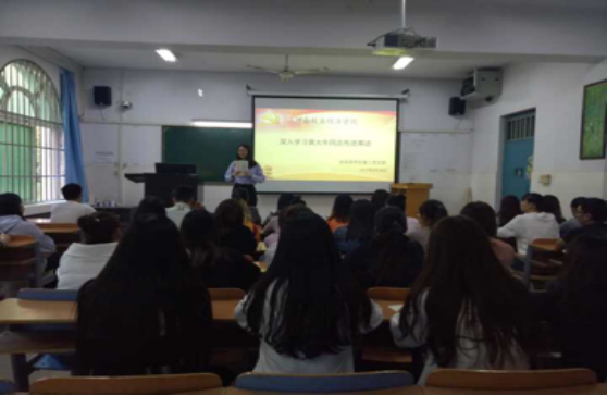 为认真学习贯彻习近平总书记关于黄大年同志先进事迹重要指示精神,文法系学生第一党支部、第二党支部在系党总支的安排指导下,分别于A110、A111教室学习黄大年同志的先进事迹。本次学习分别由学生第一党支部书记李梦雨、学生第二党支部书记欧阳宇光主持,所有在校学生党员、预备党员、积极分子参加。