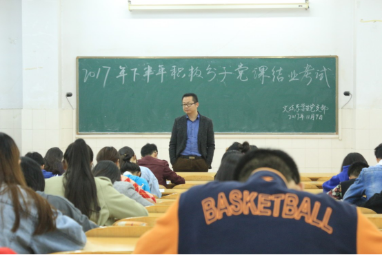 11月9日晚上七点,文法系在E310教室进行了2017年下半年积极分子党课结业考试。文法系辅导员赵永强、欧阳宇光老师担任监考员。