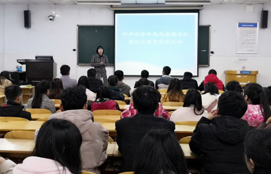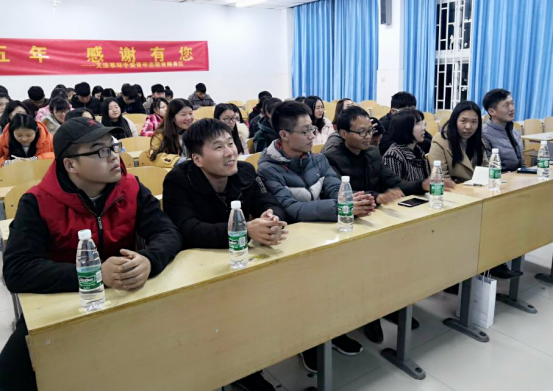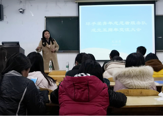 2018年 3月 6日晚,文法系环手爱青年志愿服务队在W102教室隆重举办以“有你五周年•志愿再出发”为主题的座谈会。文法系团总支负责老师李梦雨、环手爱指导老师张月、往届志愿者以及16级骨干志愿者、17级全体志愿者参加了本次活动。