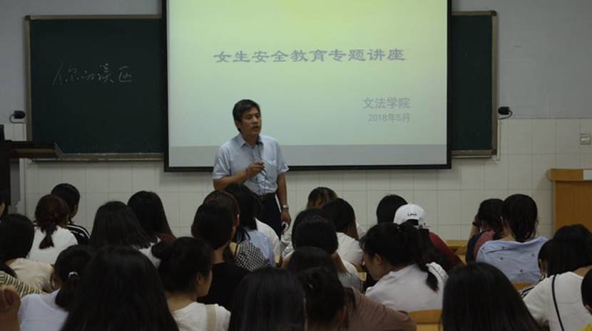 讲座上,王本聚副书记开门见山,列举了近期社会上发生的女生遇害、失联等典型案例,重申安全教育对在座同学的重要意义。王书记指出,女生要树立正确的恋爱观、人生观和价值观,注意自己人身、财产安全,并能够及时对安全隐患做出防范,同时还教导同学们要学会把安全知识应用于实际生活中,时刻牢记安全第一。辅导员吕元贞老师运用现实生活中的典型案例,从防止盗窃、防止抢劫抢夺、防止诈骗、防止性侵害和防卫技巧等五个方面的问题,做了生动讲解,同时希望广大女生,自尊自爱自强,争做魅力文法人。