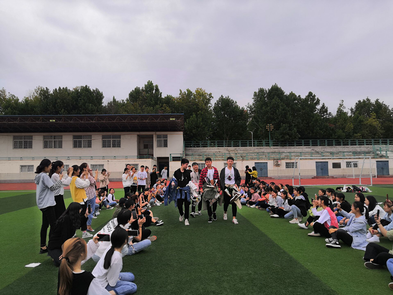 本次活动的项目有破冰、团建、五毛一块、支援前线、贴烧饼、拔河等游戏互动项目。活动开始,各班代班进行简短的发言,鼓励引导同学们积极融入此次活动。随后,同学们在“破冰”活动中,打破了新生之间的坚冰,让大家迅速熟悉并了解对方;在“团建”环节,新生们分成了几个小组,各组同学发挥聪明才智,每个队伍利用白布、彩笔、彩带等物品绘制队徽,并且进行了口号和队形的展示;在“五毛一块”的活动中,规定女生是五毛,男生是一块,主持人说出钱数,让同学们迅速结伴,拼出指定的钱数。在每一组比赛中,同学们干劲十足、兴致勃勃,比赛过程中也是充满了欢声笑语、阵阵呐喊。在这些有趣又紧张的游戏氛围中,大一新生迅速地熟悉了其他同学,并在团体中找到自己的定位,队员之间建立了信任和友谊,提高了团队意识和合作能力。