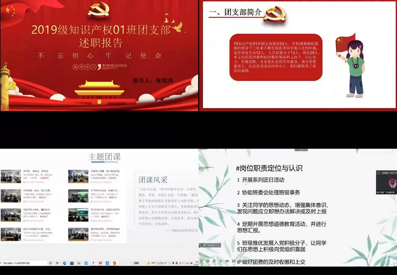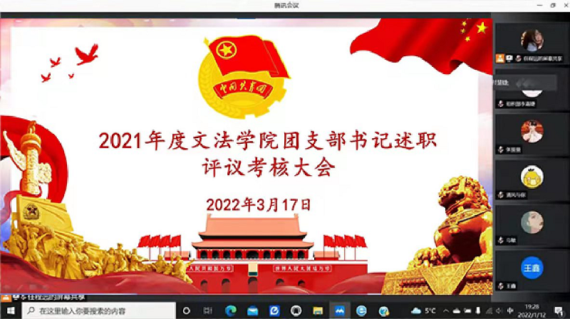 按照团中央组织部《基层团组织书记述职评议考核暂行办法》(团组字〔2021〕1号)和团省委有关要求,加强团支部书记队伍建设,激发基层团支部建设活力,充分发挥团组织在立德树人中的积极作用,williamhill英国于2022年3月17日晚20点通过腾讯会议的形式召开2021年度williamhill英国团支部书述职评议考核大会,会议由付慧婕老师主持,18、19、20、21级全体团支书参加了本次会议。