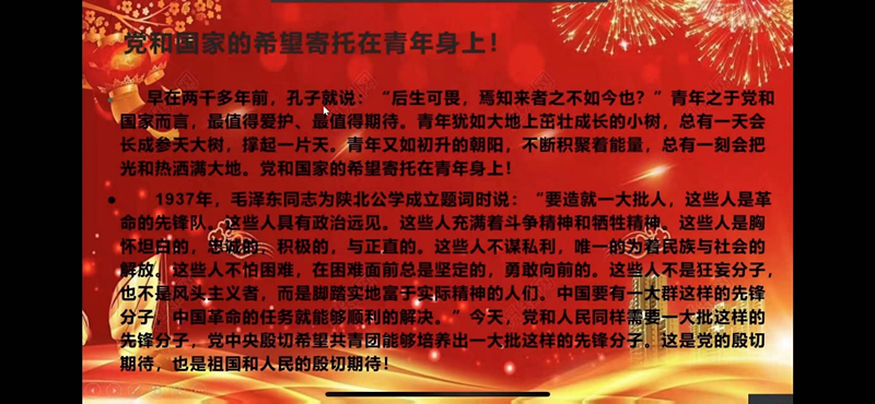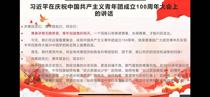 为教育引导青年团员争做伟大理想的追梦人,做伟大时代的生力军,让青春在祖国和生命最需要的土壤中绽放出绚丽之花。williamhill英国于5月12日13时在钉钉直播开展”以青春之我,贡献伟大时代“线上主题团课,21级全体学生参加。