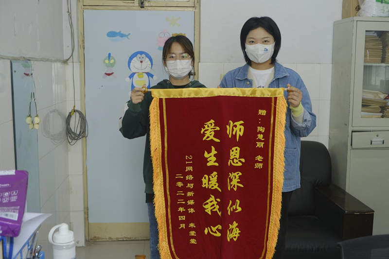 疫情期间,学生生病住院,急需手术,学生家长远在国外和省外,由于疫情防控管控原因,无法回到学生身边。年轻的陶老师化身学生的亲人,学生说刚做完手术不能吃不好消化的食物,于是从来没有做过饭的陶老师为学生亲自下厨做起了面汤。当热腾腾的面汤端到学生面前,学生感动了,学生说,“陶老师,谢谢您!您就像我的亲姐姐一样,对我真好!遇到您,真是我的幸运。”连续多日的陪伴和照顾,半个月后学生康复出院了,送来了给陶慧丽老师的锦旗,上面写着,“师恩深似海,爱生暖我心。”陶老师却说,“这是我应该做的,我就希望我的学生都健康平安!”
