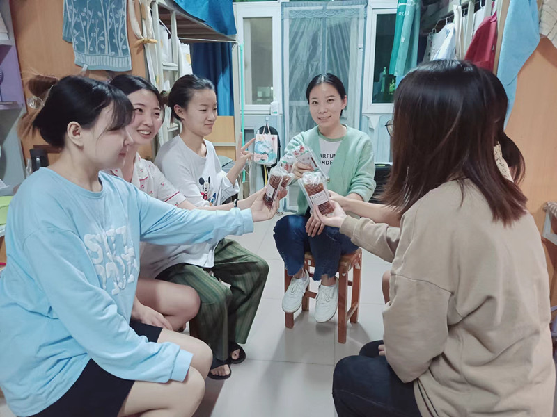 在疫情封控期间,高老师时常与学生谈心谈话,对学生进行心理疏导,及时处理宿舍矛盾,关心学生学习及健康状况。此前,在学校封控期间,高老师曾两次半夜全程陪同突发疾病的学生到医院看病,由于半夜天冷,多次陪同学生看病的湾湾老师也生病了,但是却赢得了学生们的信任和尊敬,因此,在学生们心中,高老师不仅是辅导员老师,更是一位很靠谱的导员姐姐。