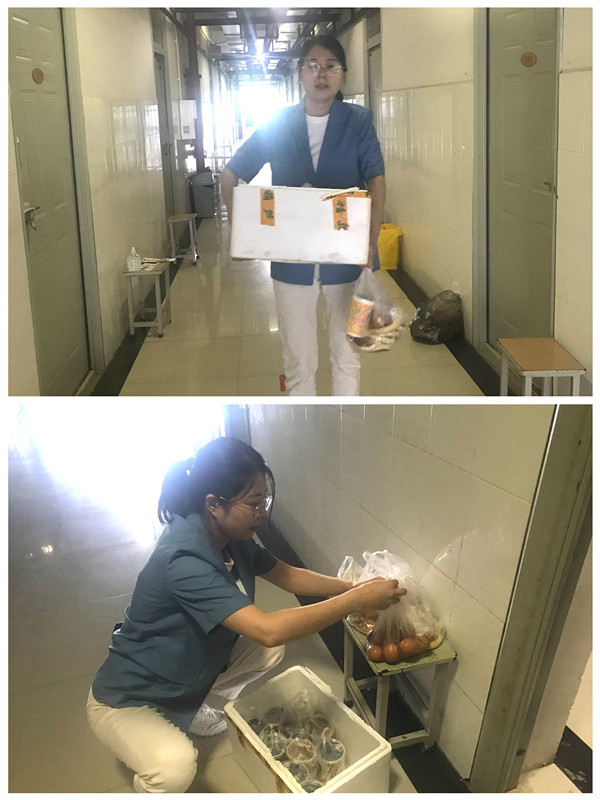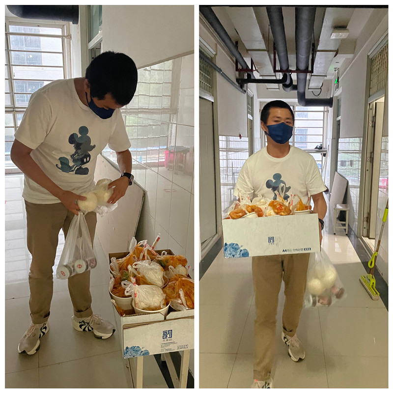 5月27日、28日,王兆北老师前往龙子湖为隔离学生服务,专门为学生购置了香菇酱,根据学生的需要定制了需要的饭菜。5月29日、30日,团委副书记吕元贞老师担心学生伙食单一,专门询问了学生的需求,为学生送去丰富的水果,30日天气炎热,39度的高温天还为学生送去了“小神童”冰淇淋,为焦躁的心情送去了一丝清凉,学生也收获了满满的喜悦和感动。5月31日至6月2日,分别由陶慧丽、付慧婕、魏江慧、高湾湾老师为隔离学生进行送餐服务,老师们都尽心尽力地满足同学们各种需求,虽然天气炎热,但是没有一位老师有一句怨言,老师们都说,“希望咱们都能考出好成绩,考上满意的学校,这点付出都不算什么。”