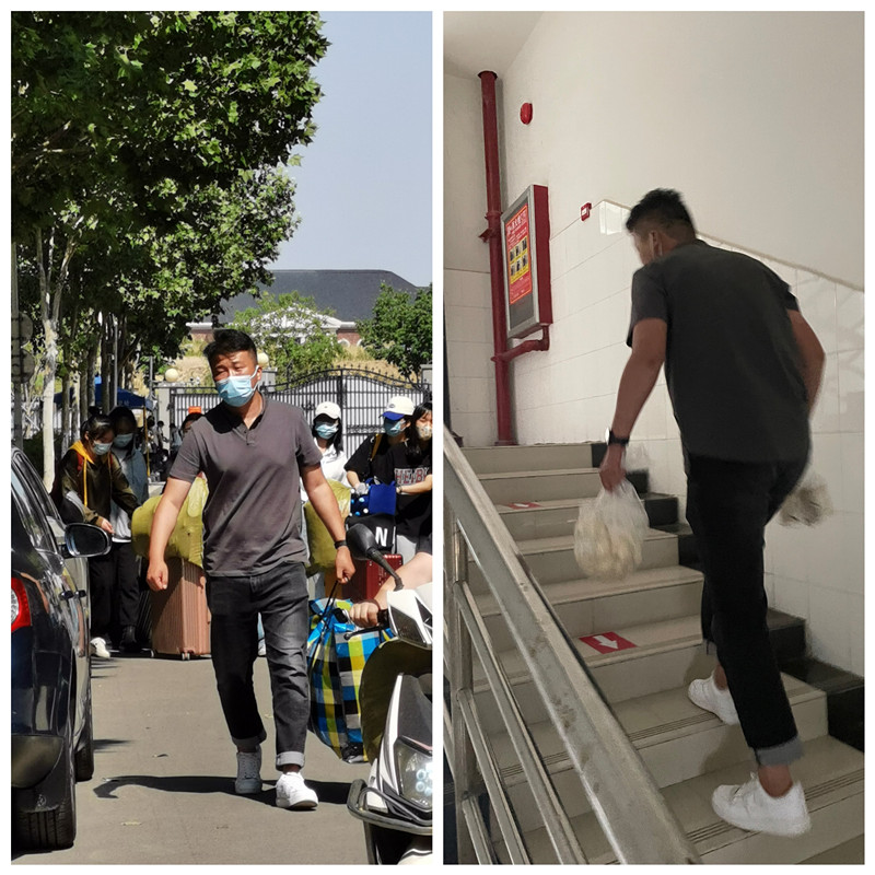 5月26日,33度的高温也没有阻挡文法学子返校的热情,上午10点,已经有学生在龙子湖校区东门外等候。经过前期的排查统计,williamhill英国专门安排了“货拉拉”爱心专用车,为学生送去了需要使用的被褥、暖瓶、电扇等日用品。高干老师早晨6点50分就已经在班车前等候,准备坐上第一班校车去迎接返校学生。10点货拉拉也已经到达龙子湖校区东门,10点半和下午2点半,高干老师冒着烈日将14名文法学子分两批安顿在5号楼隔离宿舍,匆忙之间还为学生进行了订餐送餐。
