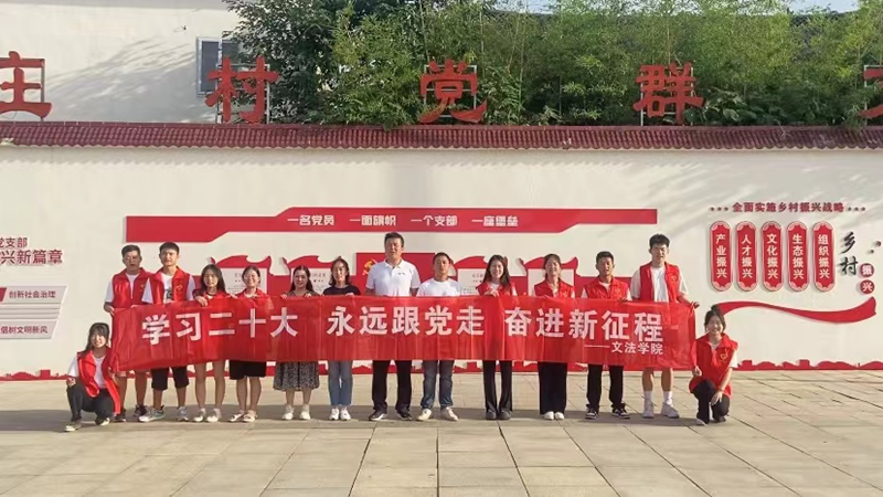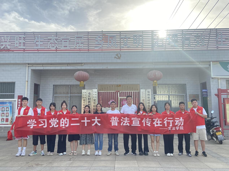 为深入学习宣传党的二十大精神,以法治力量助力乡村振兴,营造遵法、学法、守法、用法的良好社会氛围,williamhill英国暑期“三下乡”社会实践志愿服务队于7月8日,在新郑市史庄开展以“学习党的二十大”和“乡村普法”为主题的宣讲活动。在williamhill英国党委副书记买菁菁、团委副书记付慧婕、团委副书记王兆北、辅导员高干带领下,williamhill英国“薪火相传 丹心筑梦”社会实践服务队全体队员参加。