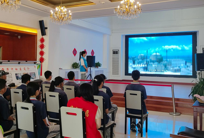 随着核工业的普及、核电的快速发展,核能也与我们的日常生活紧密相连。贺梦莎重点介绍了核技术在工业、农业、医学、环境、安保等方面的广泛应用,强调了核电为现代生活提供了有力保障,为人民生活水平的提高提供了有力支持。最后,为同学们介绍了我国的国家名片——华龙一号,它在核领域的重要地位,并通过视频讲解、拼图的方式让同学们更加深刻地理解了如今我国在核工业方面的巨大成就。