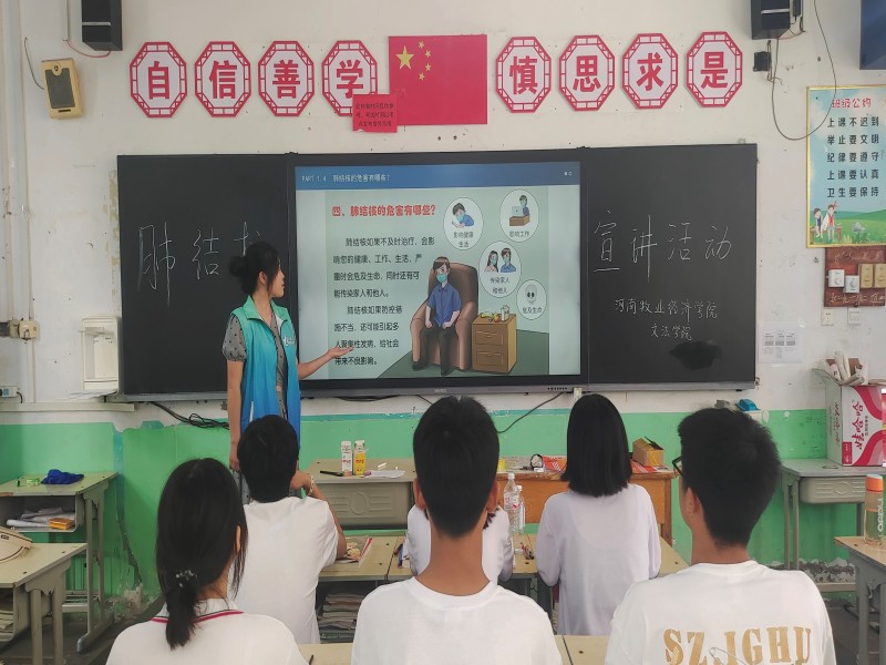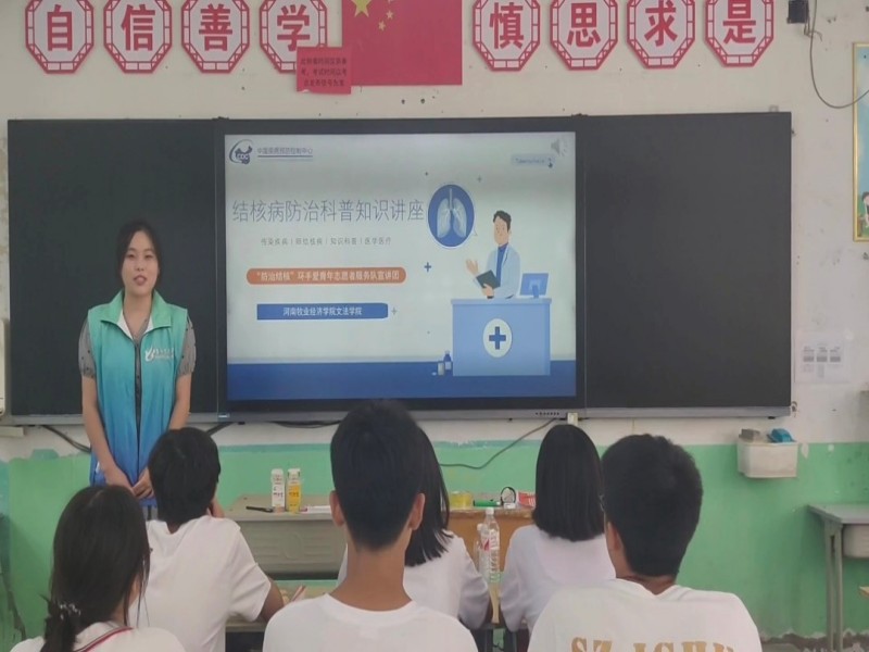 为了提高广大师生对肺结核的认知,提升自我防护意识,扩大结核病防治知识传播范围,8月25日,“防治结核”环手爱青年志愿者服务队宣讲团成员刘梦洁和方梦菲一同回访母校河南省襄城县实验高级中学开展防治结核知识讲座活动,向同学们普及结核病的相关知识。
