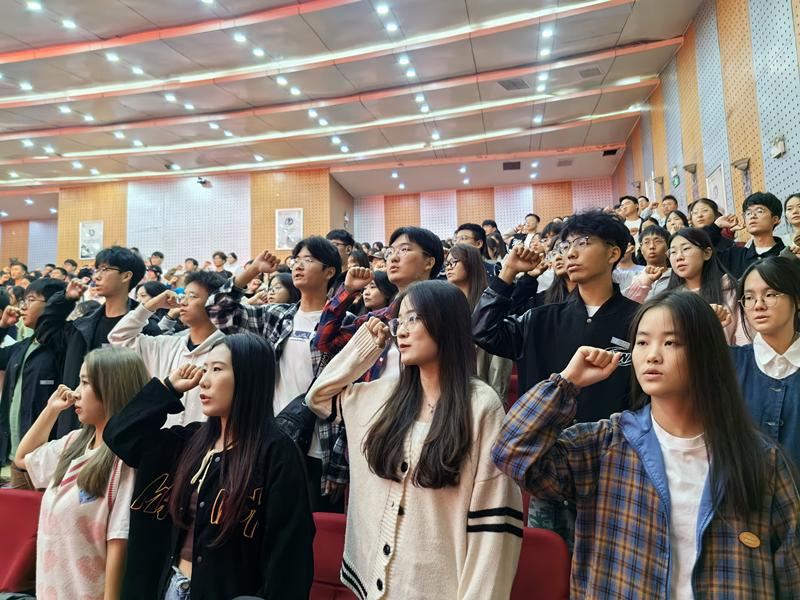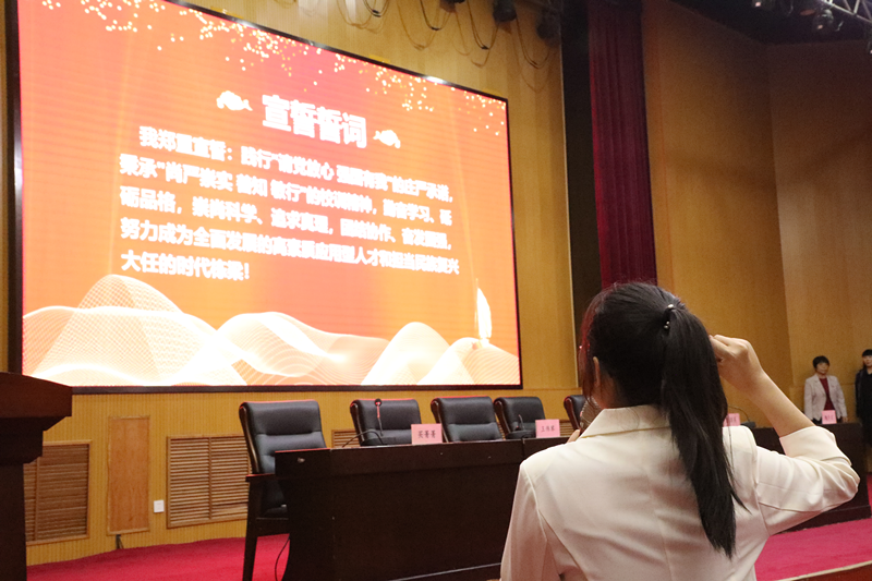 典礼最后,学院领导为新生代表佩戴院徽,孟依涵同学进行领誓,全体新生郑重宣誓。“我将践行‘请党放心,强国有我’的庄严承诺,秉承‘尚严崇实,善知敏行’的校训精神,勤奋学习、砥砺品格,崇尚科学、追求真理,团结协作、奋发图强,努力成为全面发展的高素质应用型人才和担当民族复兴大任的时代栋梁!”一句句掷地有声的誓言响彻整个报告厅,williamhill英国2023级新生的大学生活由此拉开序幕。