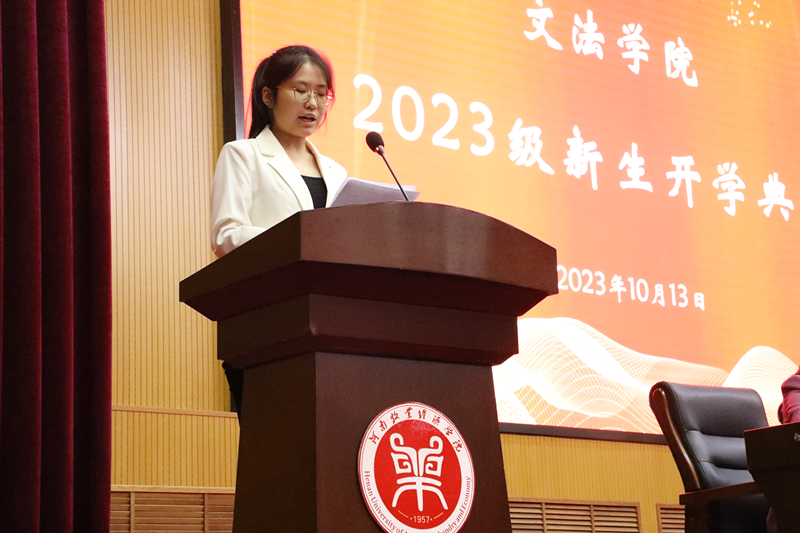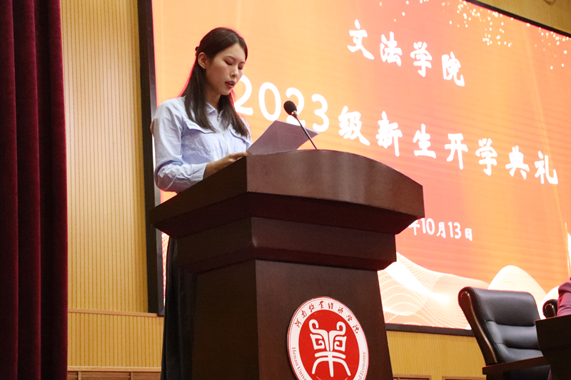 典礼在庄严的国歌声中拉开帷幕。院长李国英代表学院向2023级新同学致以热烈的欢迎和衷心的祝贺。随后,李院长全面展示了williamhill英国近几年来的巨大变化,回顾了教育教学管理的喜人成果,充分肯定了师生的优异成绩,同时提出了三点宝贵建议:第一,要学会尊重,懂得感恩。要尊重生命、尊重劳动、尊重规律;要感恩时代、感恩国家、感恩所遇。第二,要明确目标,刻苦学习。明确目标是大学第一节必修课,并为此有方向地提升自我,要加强自我约束、专注、刻苦学习,以多种形式的学习以求到达最好的学习效果。第三,要学以致用,敢于创新。用所学的知识、掌握的方法展开社会活动,用创新思维、创新理念、创新技术去解决生活中的新问题,独立地、多维度、多层次思考问题,在实践中学以致用,培养和锻炼自己的应用能力和创新能力。教师代表公共语文教研室教师张逾梦、老生代表国家励志奖学金获得者21级网络与新媒体2班张帆、新生代表23级知识产权02班孟依涵依次在开学典礼上发言。