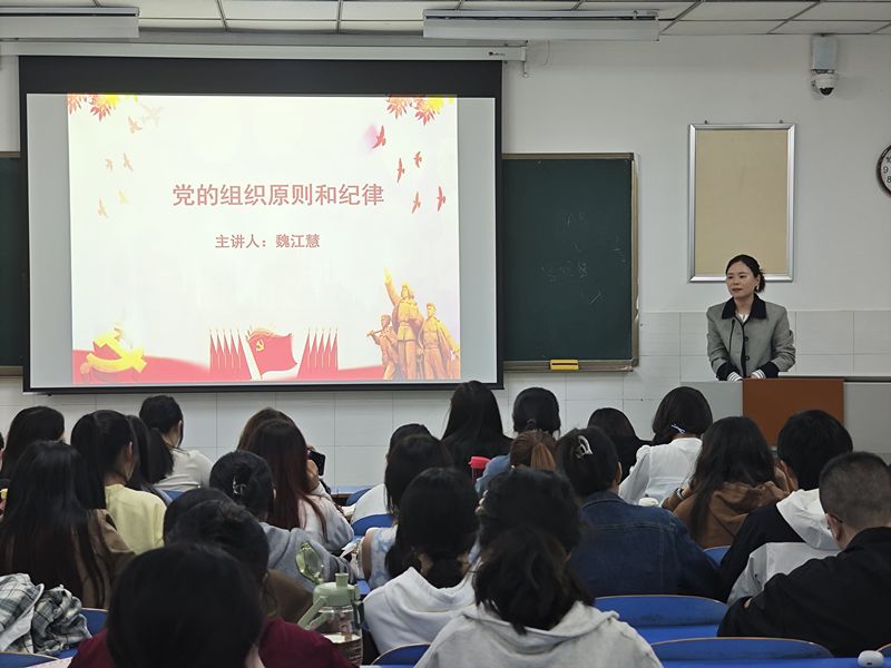 魏江慧老师首先向大家说明了党的组织原则和党的纪律的重要性,强调要想成为一名合格的共产党员,必须要了解党的组织原则和纪律,在日常和工作中严格遵守。随后,她讲解了中国共产党的根本组织制度——民主集中制,并阐述了民主集中制的基本原则,结合民主集中制的历史沿革和中国的国情,讲述了民主集中制的内涵、民主和集中之间的辩证关系,以及坚持民主集中制的重要意义。接着,魏老师讲解了党的纪律要求,强调纪律是严肃刚性的,要求大家认真学习《中国共产党章程》、《中国共产党纪律处分条例》、《关于党内政治生活的若干准则》等规范性文件,严格遵守党的组织和纪律原则,自觉做到知党规、懂规矩、守纪律。最后,对全体积极分子提出要求,要坚持民主集中制的原则,坚决维护党中央的权威,自觉遵守和维护党的纪律,增强党纪观念,争取早日加入党组织。