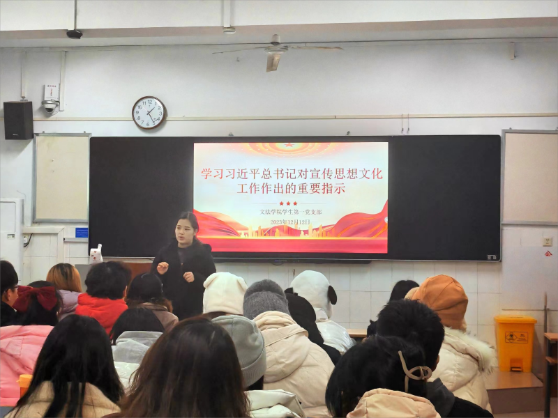 最后,支部书记付慧婕结合会议主题进行讲话,指出这次全国宣传思想文化工作会议最重要的成果,就是正式提出了习近平文化思想。习近平文化思想蕴含着伟大的真理力量、实践力量和人格力量,标志着我们党对中国特色社会主义文化建设规律的认识达到了新高度,表明我们党的历史自信、文化自信达到了新高度。同时,她还要求学生党员要做到原原本本扎实学、专题研讨深入学、严格要求全员学、拓展形式灵活学,真正做到学懂、弄通、悟透。