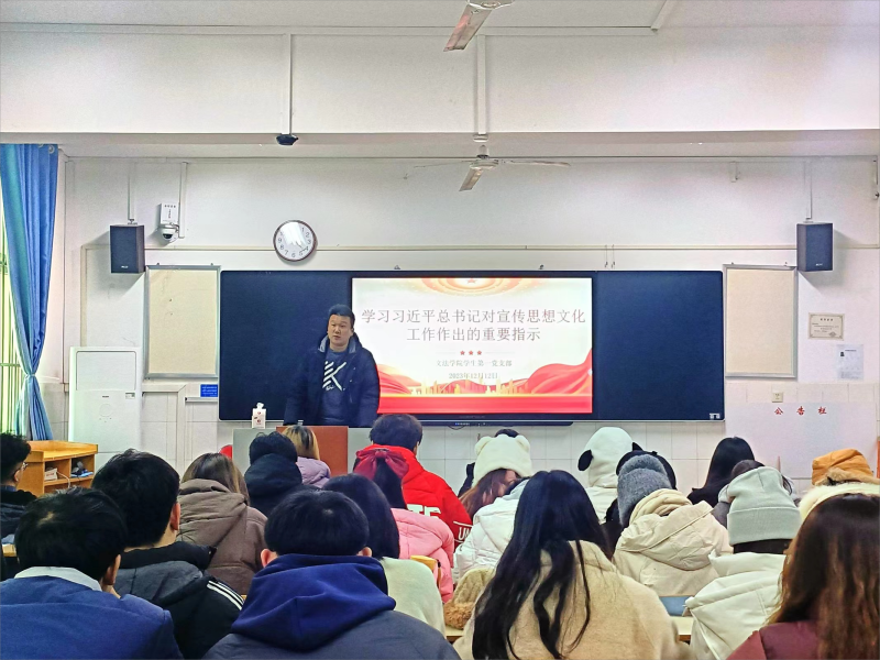 为深入学习领会习近平总书记重要指示和全国宣传思想文化工作会议精神,坚持正确舆论导向,加强学生党员的思想道德建设,保持政治立场上的清醒和坚定,williamhill英国学生第一党支部于12月12日下午在B205教室开展关于学习习近平总书记对宣传思想工作作出的重要指示的专题学习会议。本次会议由williamhill英国学生第一党支部书记付慧婕主持,文法学院组织委员高干及williamhill英国第一党支部全体党员参加。