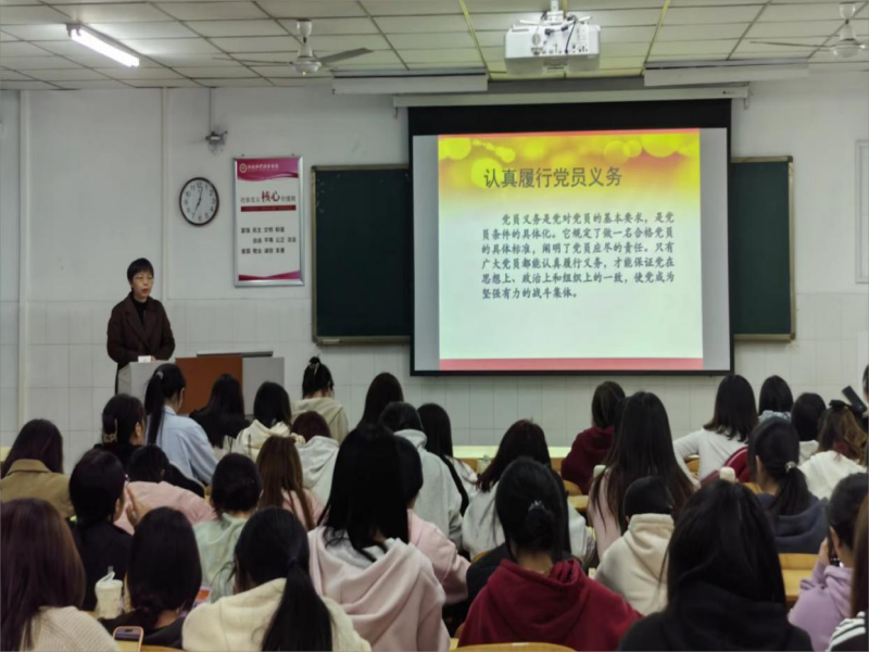 课程伊始,白院长将群众与共产党员进行对比,鼓励入党积极分子为人民服务,不与群众争夺利益,努力向共产党员看齐。随后,白慧颖对党员的义务做了详细解释,强调了要自觉树立“四个意识”,坚定“四个自信”,做到“两个维护”,希望入党积极分子能够在日常的生活中发挥模范带头作用,不断提高知识储备,加强自身的党性修养。同时,她还为入党积极分子讲解了党员的权利,明确指出党员的权利是坚持和健全民主集中制的基础。民主集中制的民主,是党员和党组织的意愿、主张的充分表达和积极性、创造性的充分发挥。她强调党员应切实开展批评和自我批评,勇于揭露违反党的原则的言行,纠正工作中的缺点和错误。最后,白院长对入党积极分子表达了殷切期望:希望大家坚定信仰,勇毅前行;克服小我,成就大我,争取早日成为一名合格的共产党员!
