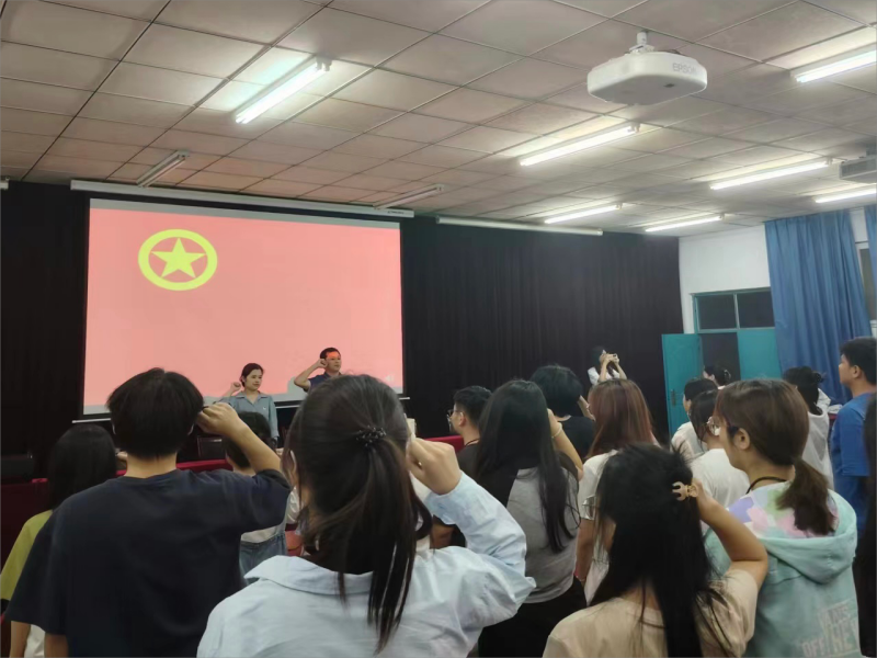 在庄严的国歌声中,入团仪式拉开帷幕。全体团员整齐列队,目光坚定,展现出了新时代青年的蓬勃朝气。随后,院团委副书记王兆北宣布新团员入团名单,并向他们表示热烈的祝贺和诚挚的欢迎。接着,付慧婕和王兆北两位老师为新团员佩戴团徽,颁发团员证,这象征着团组织的传承与希望。接着,优秀团员代表赵晏阳带领全场新老团员面向团旗,庄严宣誓。宣誓结束后,新团员代表韩佳蒙同学发言,她们表示新团员要认真履行职责和义务,保持谦虚谨慎、勤奋好学的态度,为祖国繁荣昌盛贡献自己的青春和力量。随后我院团委副书记付慧婕老师发表讲话,为新发展团员提出要求,提醒新团员明确自己从这一刻起作为一名团员的责任感,希望大家不断加强自身的道德修养,不断提高自己的思想觉悟,严格要求自己。最后,大家一同奏唱中国共产主义青年团团歌,歌声激昂有力,彰显了团员们作为新时代青年的责任与担当。