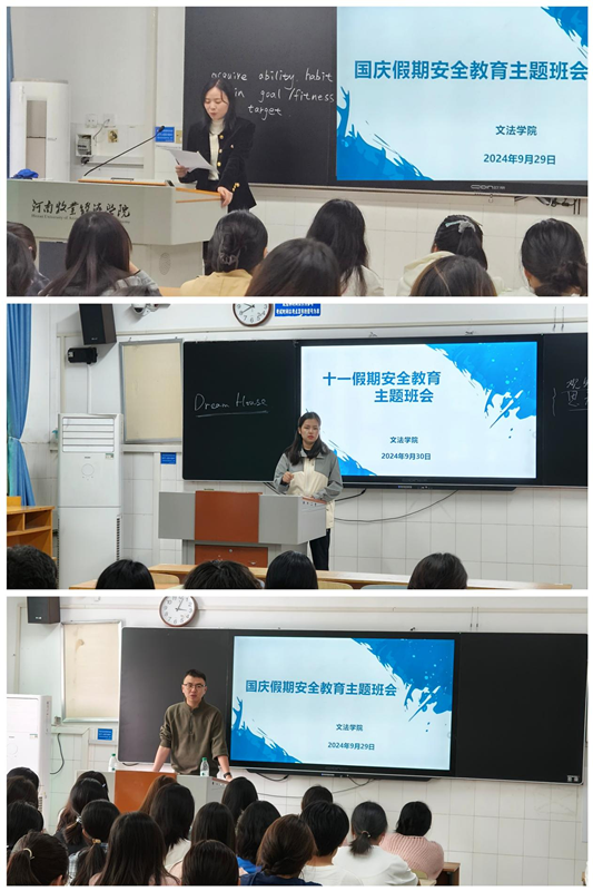 班会上,辅导员结合本班情况,重点强调了假期人身安全、交通安全、财产安全、用电安全、饮食安全、网络安全、极端天气等注意事项,引导大家增强安全意识。第一,做好去向落实,清楚掌握每位同学假期动态,做到数据准确,摸排清楚。第二,离校前提醒大家认真按照学校一站式学生社区工作要求,排查宿舍安全隐患,注意用火、用电安全,做到断电、锁好门窗、收好贵重物品;留校同学遵守校规校纪,不晚归,不留宿他人。第三,离校过程中注意人身安全、财产安全、交通安全等方面,遇到问题通知家人,及时与辅导员沟通;第四,外出时,做好个人防护,做到不轻信、不转帐,增强法律意识和防盗、防骗意识,提高自我保护能力。