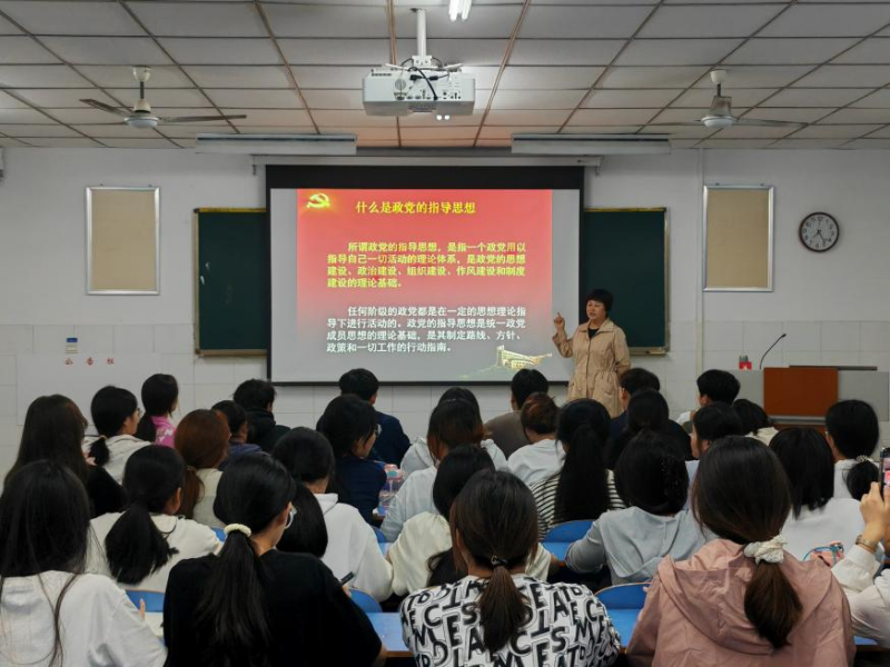 为进一步加深入党积极分子对党的指导思想的认识,端正入党动机,提升党员质量,williamhill英国于10月15日晚上7点半在E303教室开展了2024年第二期入党积极分子党课培训第一讲——党的指导思想。本次党课由williamhill英国正处级组织员葛丽娅主讲,本期入党积极分子全体参加。