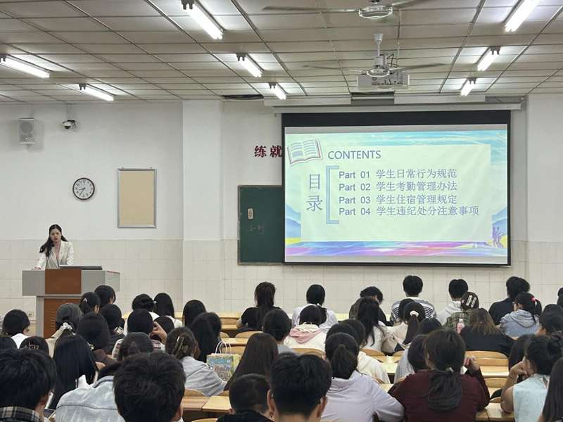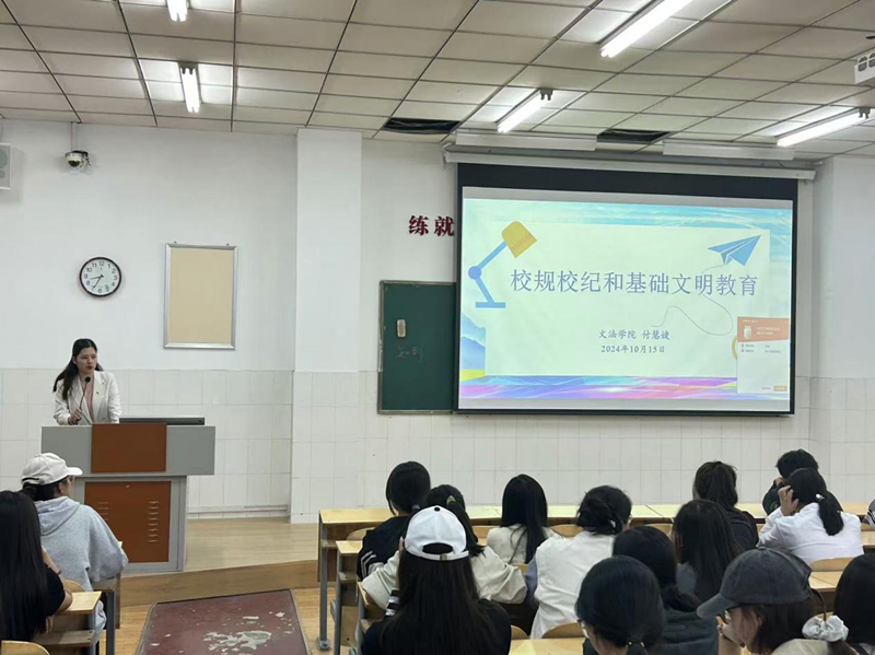 为帮助2024级新生更好地适应大学生活,树立规矩意识,williamhill英国10月15日晚七点—九点于E210、E403教室组织开展了以“校规校纪和基础文明教育”为主题的新生入学教育。讲座由williamhill英国团委副书记付慧婕主讲,2024级全体新生参加。
