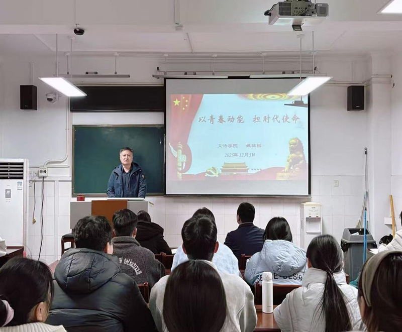 会议伊始,姚喆祺系统回顾了中国近现代历史,阐述了青年一代在救亡图存、革命建国、改革开放等每一个关键阶段所发挥的先锋与栋梁作用,强调青年始终是推动国家发展和社会变革中最积极、最有生气的力量。接着,他结合历史与现实,从四个方面阐述了青年与中国式现代化的内在联系:一是青年在中国式现代化探索和拓展中的重要作用;二是以青年的现代化推进中国式现代化;三是中国青年奋进社会主义现代化新征程;四是中国式现代化新征程对青年提出了坚定理想信念、胸怀责任担当、锤炼专业本领、投身实践锻炼的明确期望。他指出,青年的现代化体现在面向知识、面向世界、面向未来、人文与科技素养的融合发展、勇于担当国之重任等多个维度。他结合党的二十届四中全会精神,激励当代青年要抓住时代机遇,提升综合素质,勇于在科技创新、乡村振兴等关键领域担当作为,将个人理想融入国家发展的宏伟蓝图,全程参与并助力第二个百年奋斗目标的实现。最后,姚喆祺对新时代青年提出了殷切期望与总结。他勉励青年要以坚定的理想信念照亮前行之路,以扎实的专业知识和实干精神筑牢成才之基,以强烈的责任担当肩负起历史使命。他号召全体青年将奋斗作为青春最亮丽的底色,在全面建设社会主义现代化国家的火热实践中施展才干、贡献力量,谱写无愧于时代的绚丽青春篇章。整场讲授既贯通历史与现实,又充满期许与激励,为青年的成长发展指明了清晰方向。