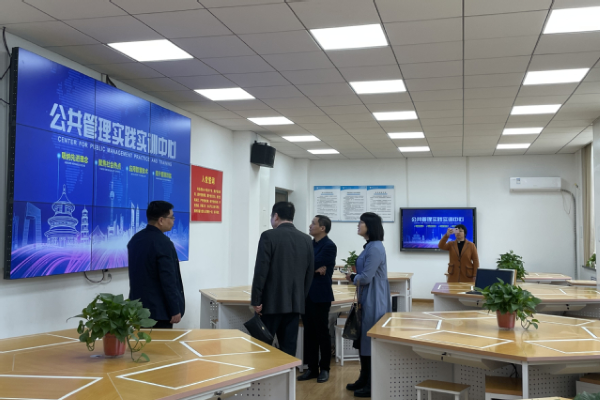 本次调研得到了政法学院副院长栗志强、实验实践教学中心主任郝宏杰的热情接待。在专题座谈中,双方围绕学科发展专业建设、实训室建设等进行了深入的座谈交流。栗志强副院长介绍了郑州轻工业大学社会工作专业,作为国家“一流专业”、省级“一流专业”在建设思路、培养特色、实习实践等方面的先进经验。随后,刘明江一行参观了政法学院社会工作TPR融合实训中心、公共管理实践实训中心、模拟法庭等专业实验室,详细了解了学院实训室建设规划和主要功能、实训课程建设、实训室管理和实践教学运行情况。
