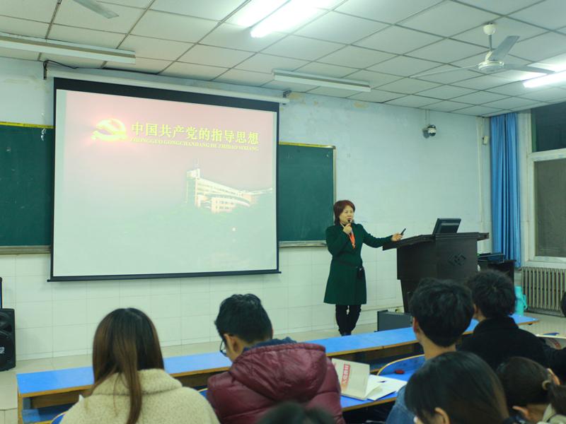 2019年11月27日晚,williamhill英国在E203教室进行了入党积极分子培训班第四讲——《党的指导思想》。主讲人为williamhill英国正处级组织员葛丽娅,本期入党积极分子全部参加。
