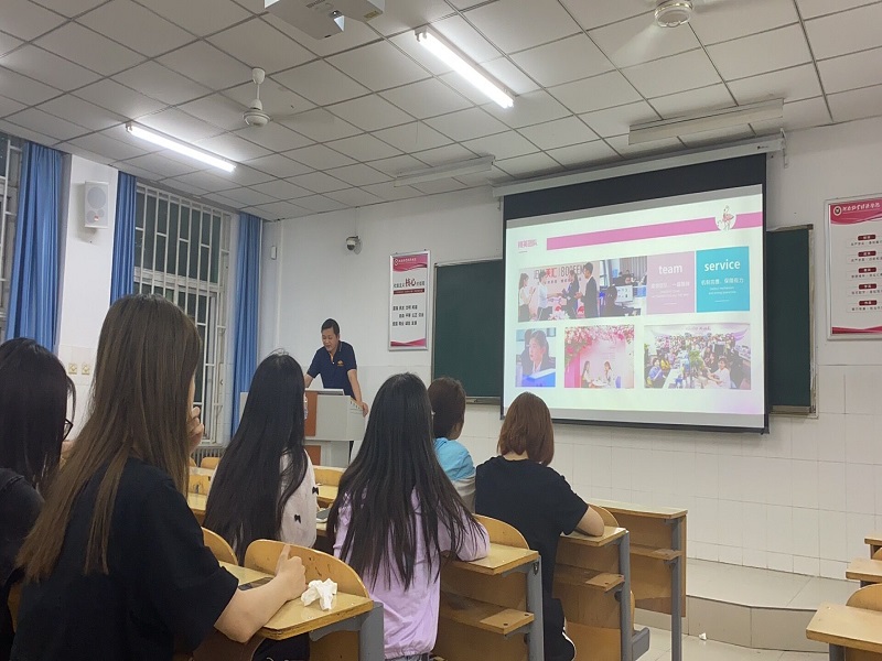 会上,河南泊伊美汇化妆品集团有限公司负责人从集团简介、企业文化、招聘简章、成长路径、福利待遇五个方面向学生进行详细讲述。泊伊美汇自创立之始,致力于国外优势美妆产品的引入与经营,主营产品涵盖欧美、日韩、东南亚等二十多个国家和地区400多个知名品牌,SKU达4000多个。品类涵盖护肤、彩妆、香氛、化妆工具等,严格把控质量关,秉承“品牌合作,正品保障”的理念。泊伊美汇品牌于2019年首创“520闺蜜节”,打造了现象级标签日,同时致力于线上和线下同步推广,突破传统玩法,紧跟时代潮流。就同学们最关心的薪资待遇问题,公司负责人从管培生岗责、福利待遇、及成长路径给出详细的介绍,在提出岗位任职要求的同时,也向同学们展示了公司内部工作环境和员工进行团建旅游具体情况。最后,公司负责人与同学们进行互动,详细回答了同学们的疑问,并鼓励大家要积极面对就业问题,树立正确的择业观,并敢于尝试,勇于挑战。