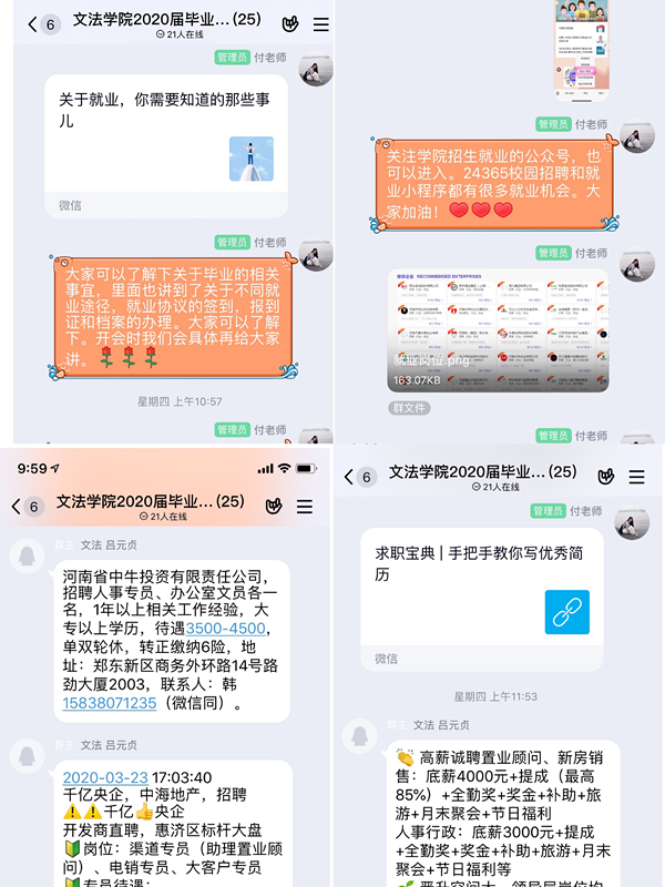 会上宣布,为加强就业指导,williamhill英国建立了QQ群、钉钉视频会议群,利用互联网及时分享就业信息、开展就业指导,为毕业生提供多对一、一对一答疑解惑。