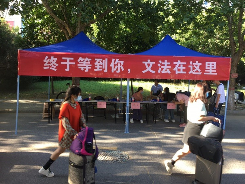 学生报到当天,学院党政领导、辅导员及教师志愿者老早在学生接待点等候报到的同学们。学生到校后经由专门入口通道,按照工作人员指引进行行李消毒、体温检测,出示健康码和“四单一书”,核验通过后方可入校。辅导员对学生返校情况进行实时统计后上报,并根据“日检日报”流程分早中晚时段,督促学生填报体温数据,确保在校学生身体健康和防疫安全。