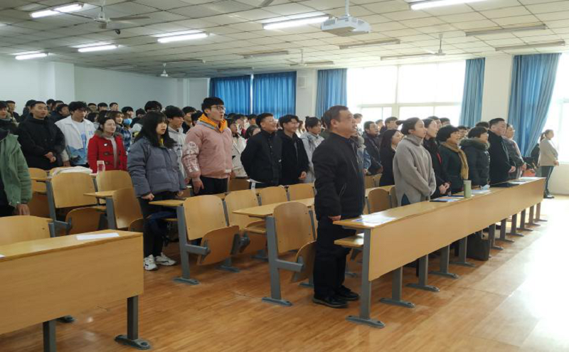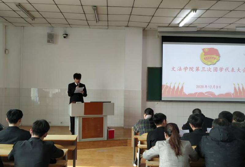 在铿锵有力、整齐合一的国歌声中,本次团学代表大会正式拉开帷幕。吕元贞老师首先对本届团学工作进行了总结,以及对支持与积极配合团学工作的同学和老师们表示了衷心的感谢。接着,我院党委书记胡红林为本次团学大会作动员讲话。他指出,在我院全体师生的支持和共同努力下,我院团学会成功举办了多项文体活动、圆满完成了各项工作,丰富了同学们的课余生活、提高了综合素质。同时,他还对下一届团学会成员寄予厚望,希望大家继续将优良传统发扬下去,以全心全意服务学生为宗旨,以加强对同学的政治引领为根本,不断提高学生干部的综合素质,充分发挥学院学生干部的先锋模范作用。随后,学生会主席李祎泽上台发言,他对本届团学会主要工作进行了总结,同时提出了对新一届团学会干事的期许,希望干事们能够脚踏实地,积极主动地投身到各项学生工作中去。