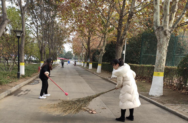 在本次劳动周中,我院以班级为单位,对劳动周的具体工作进行了详细部署,保障了我院劳动周实践活动的有序进行。本周气温持续的降低,没有击退同学们劳动的热情。每天七点,天才刚亮,同学们就带着劳动工具准时出现在了负责区域,认真有序地进行着打扫,不放过卫生区域的每一片垃圾,充分发扬了不怕脏、不怕苦、不怕累的劳动精神。由于本周的降雨、降雪天气,落叶增多且不易打扫,我院辅导员吕元贞、付慧婕老师也参与到劳动周实践活动中,为同学们送去慰问,并分担了工作量,同时也身体力行地为同学们树立了榜样。