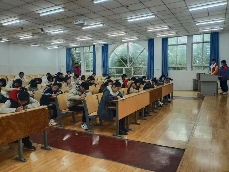 在2020年郑开马拉松志愿者招募的基础上,williamhill英国“环手爱”青年志愿者服务队统计了愿意继续参与后续选拔的同学,并在这些人中开展笔试。参与笔试的同学们准时到达,在监考人员的安排下按笔试规则坐好,并在笔试期间遵守笔试纪律,认真诚恳地作答。同学们的热情为后续的面试选拔、考核、培训、上岗服务奠定了基础。