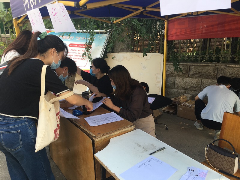 为配合疫情防控的相关要求,早上8点,在校保卫处的支持下,我院在英才校区的学校大门外为学生办理相关手续。档案发放前,辅导员郭晨老师对学生档案进行了仔细的核对和密封。在发放过程中,前来领取的学生进行健康码扫码后,有序排队,老师及志愿者们逐一核对学生的身份证件,然后为学生发放档案、办理团组织关系转接,经过近10个小时的努力,下午5点,终于圆满完成了我院所有专升本学生的档案发放工作。
