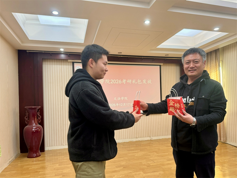 现场气氛热烈而温馨,同学们接过礼包,脸上洋溢着感动与喜悦,纷纷表示一定会全力以赴,不辜负学院的期望。考研的征程虽充满艰辛,但文法学子们从来不是孤身一人,学院的这份关怀如同冬日里的暖阳,照亮并温暖着他们前行的道路。
