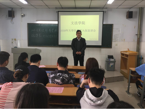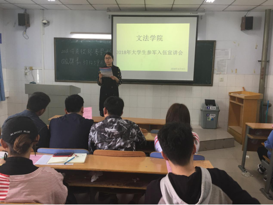 参军报国赤子丹心,满腔热血青春无悔。为加强征兵宣传,促进大学生参军入伍工作,4月9日下午,williamhill英国在A502教室举办了“大学生参军入伍宣讲会”。宣讲会由我院武装专员吕元贞老师主持,各班级学生干部、信息员、学生代表参加了宣讲会。院总支副书记王本聚出席了会议。