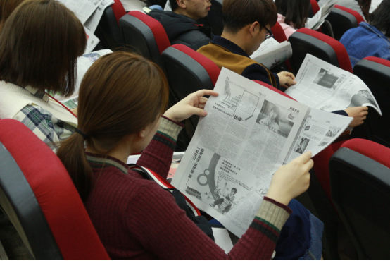 讲座以一道面试题拉开序幕,学生们认真思考踊跃发言,展现了较强的逻辑思维能力和语言沟通能力。随后,工作人员向学生们讲述了高校第一传媒——《校园在线》的办报宗旨和意义,并详细介绍了该报每个版面的特色。主讲人告诫学生们要“多读书,读好书”,鼓励大家多阅读中国的经典名家著作,丰富精神世界,增强文化自信,同时也鼓励学生们积极练笔,踊跃投稿。与会同学认真聆听,积极参与互动,展现了大学生的风采。