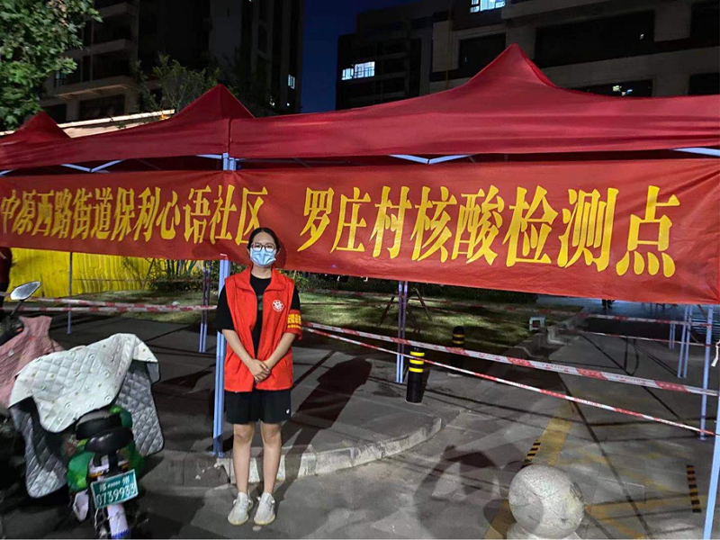 19级行政董孟姁同学自愿投入到社区疫情防控工作中,负责的工作是协助调查单元楼道的人员排查,采集业主信息和出行情况,协助医护人员进行核酸检测等任务,用实际行动为打赢疫情防控阻击战贡献志愿力量。