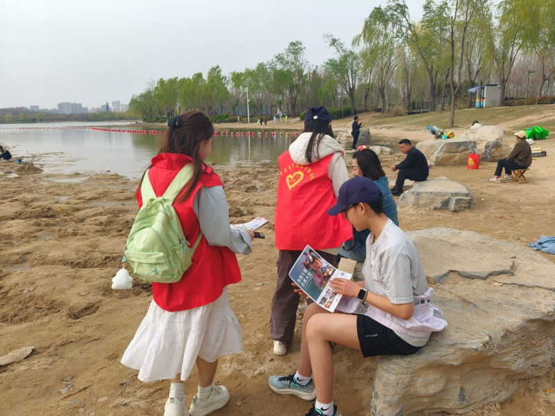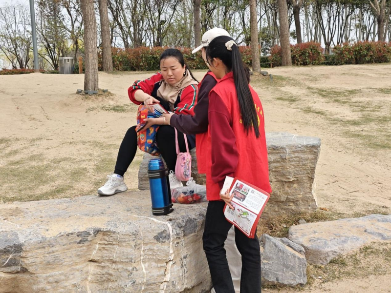 活动当日,微风徐徐。上午8点,参与活动的大学生们准时在集合点集合,现场气氛热烈而庄重。活动负责人强调了此次活动对于贫困山区儿童的重要意义,大家热情高涨。在组织者清晰且细致的活动规则与安全事项讲解后,徒步行队伍正式出发。一路上,志愿者们身着统一服装,整齐有序前行。他们手持温情宣传单,上面印着“用脚步丈量爱心,以行动助力午餐”“每一步,都是为了孩子的微笑”等温暖话语。大家一边欣赏着北龙湖湿地公园的春日美景,湖水波光粼粼,岸边绿草如茵、繁花似锦,一边不忘向游客们耐心讲述免费午餐项目的意义与贫困山区儿童面临的饮食困境。许多游客认真阅读宣传单和宣传明信片,了解到此次活动的目的,关注到了贫困山区儿童用餐问题。