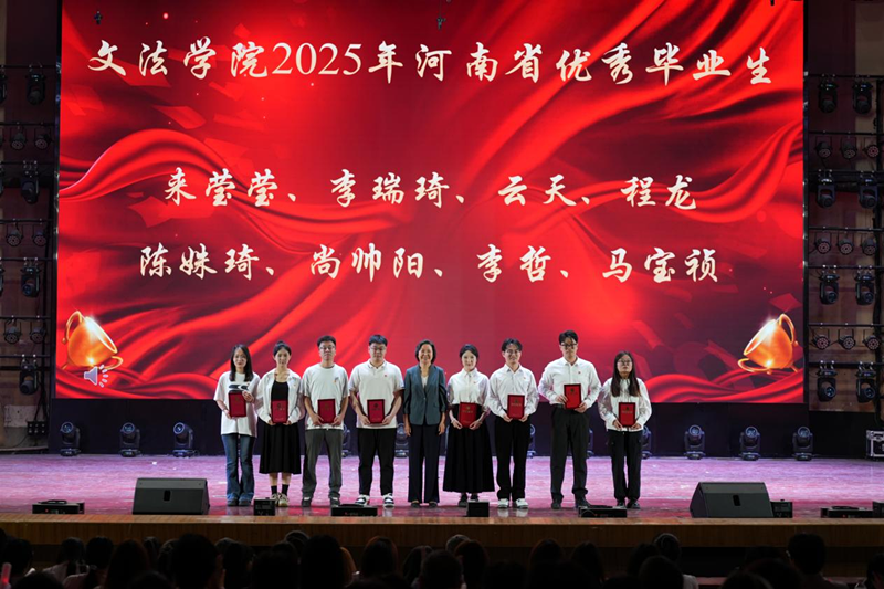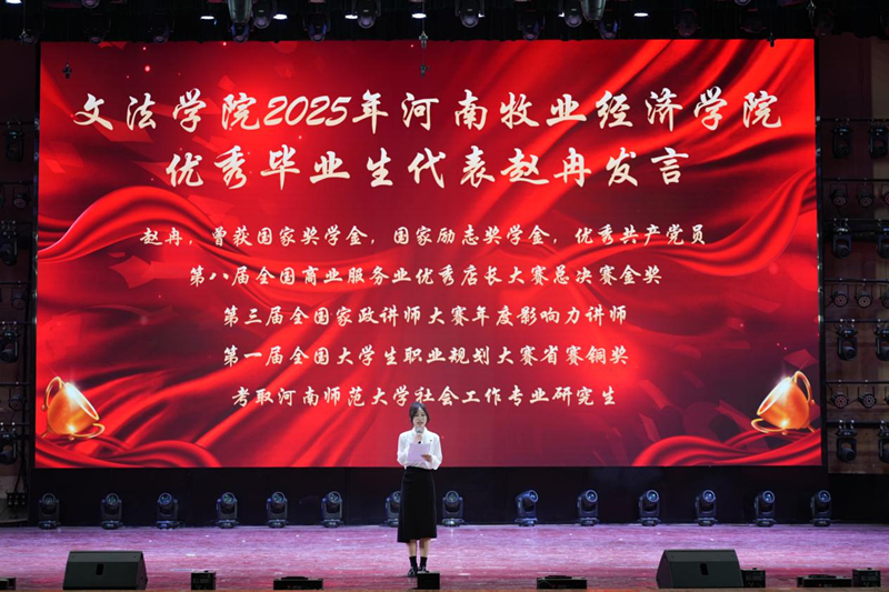 此外,本次晚会分别对省级优秀毕业生、校级优秀毕业生、高质量就业代表、河南省大学生职业生涯规划大赛获奖代表、优秀运动员代表进行了颁奖,优秀毕业生代表赵冉上台发言。颁奖仪式上,同学们尽显自信笑容,颁奖嘉宾们赠送美好祝愿。