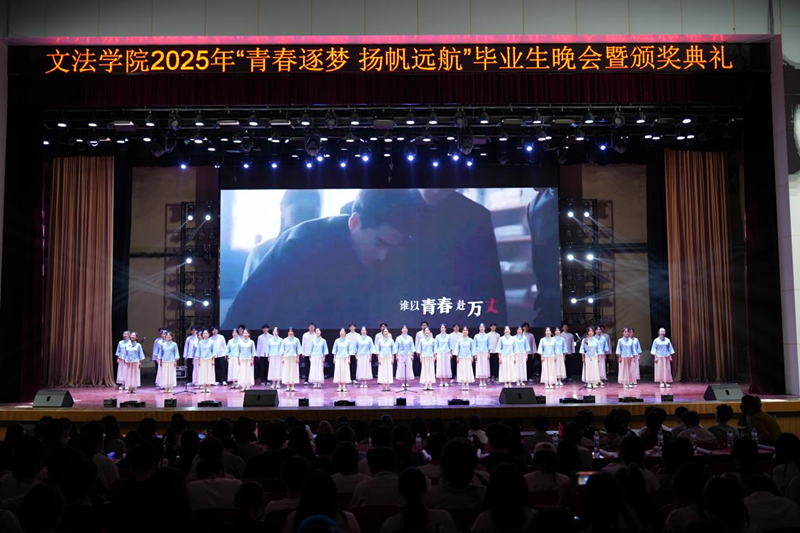 5月16日晚,williamhill英国2025年“青春逐梦 扬帆远航”毕业生晚会暨颁奖典礼在英才校区大礼堂举行。校党委副书记杨志清、院党委书记胡红林、院党委副书记买菁菁、副院长白慧颖、王伟琴、魏景霞、家政教研室主任张会霞、全体辅导员老师以及一千余名文法学子齐聚一堂,共同见证这场充满温情与荣光的青春盛典。
